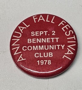 Bennett Fall Festival ~ Bennett Iowa ~ Pinback Button 1978