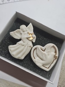 Lenox White Porcelain Brooch Lot Of 2 Heart Dove Harp Angel #5263