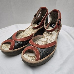 Fly London Ydel Perforated Leather Peep Toe Wedge Sandals Bronze 37 US 6.5-7