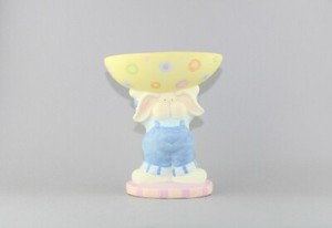 Easter Bunny Rabbit Holding Egg Candy Dish Spring Decor Pastels