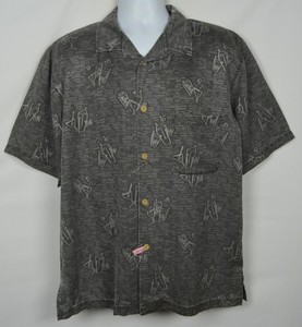 Nat Nast Shirt Mens M Gray Silk Short Sleeve Button Up Cocktail Lounge Camp