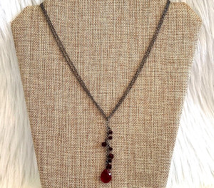 Whimsigoth Red Glass Necklace Gunmetal Tone Festival Medieval Western Boho 15534