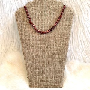 Vintage Stone Chip Necklace Red Brown Choker Chakra Healing Coastal Boho 13793