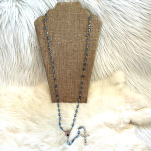 Vintage Christian Cross Catholic Rosary Blue Bead Necklace Blue Religious 15604