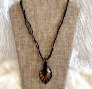 Metallic Gold Glass Art to Wear Necklace Beachy Western Grunge Adjustable 15217