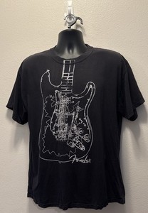 Fender T Shirt Mens L by Du Vinci Guitar Graphic Logo Music Black Short Sleeve