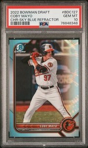 2022 Bowman Draft #BDC127 Coby Mayo Chr-Sky Blue Refractor PSA 10