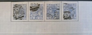 GB QUEEN VICTORIA SG 142 2 1/2D BLUE PL'S 17 TO 20 SET USED