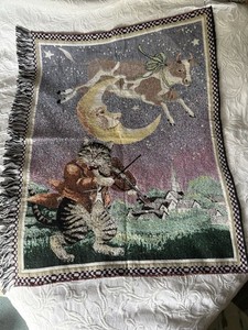 Vtg 90's The Rug Barn Folk Art Cow Jumped Over Moon Wall Tapestry Throw Blanket
