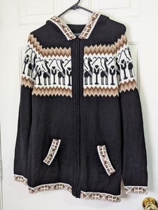 Gamboa Hoodie Sweater Alpaca Wool Womens Medium Black Tan Llama Andino Pocket
