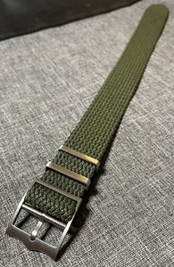 Single Pass Perlon Watch Strap / Deep Green Weave / Stainless Crown buckle 20/22