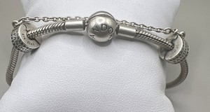 Sterling Silver 7.5” Pandora Snake Chain Bracelet With Charm (18.31g)