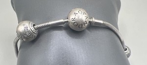 Pandora Sterling Silver Barrel Clasp Snake Chain Charm Classic Bracelet (14.58g)