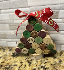 Handmade Wine Cork Christmas Tree NEW 5 x 5 Joy Ribbon