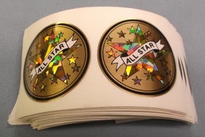 lot of 27 trophy parts ALL STAR gold star mylar 2" diameter