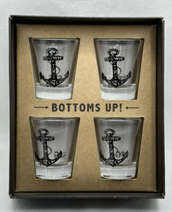 Nautical Shot Glass Set - 4 Shot Glasses with Anchor Image ‘Down The Hatch’