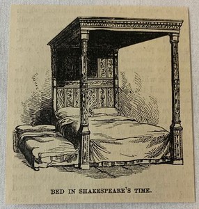 1876 magazine engraving~ BED IN SHAKESPEARE'S TIME