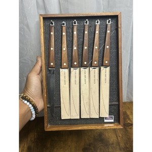 Set (6) Vtg Ekco Flint Steak Knife Set Pakkawood Handle Hang Up Holes #G5037W