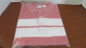 HABAND Red & White Striped 3 BUTTON Short Sleeve POLO SHIRT~Pocket~Men's XL~NWT