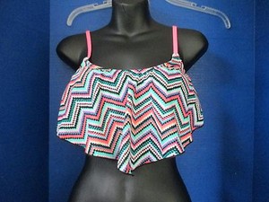 ARDENE SWIM~Pink & Aqua LEAVES BIKINI TANKINI Swimsuit TOP SWIMWEAR~Womens Large