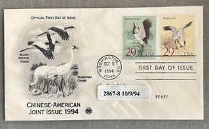 US 1994. Black-Necked Crane, Sc2867-8. 29c. Joint Issue. FDC.