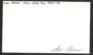Len Perme ( Debut 1942 ) CHICAGO WHITE SOX SIGNED AUTOGRAPH AUTO 3x5 INDEX COA