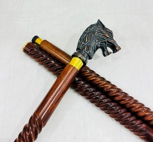 Lion Handle Spiral Wooden Walking Stick 36" Spiral Cane Men/Father/Dad/Christmas