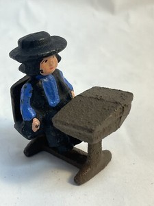 Vintage Cast Iron Amish Man Sitting And Desk 2 In H