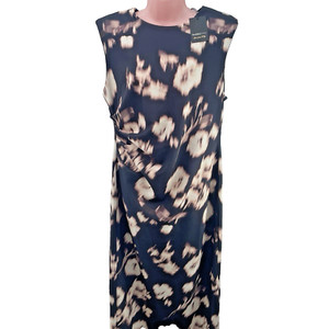 River Island Sleeveless Midi Shift Dress, Size UK 16, Black Blur Floral, RRP £40