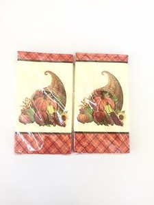 2X Thanksgiving Small Beverage Paper Napkins Fall Harvest Turkey Plaid 40 Count