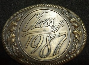 CLASS OF '1987' vintage rare solid brass belt buckle