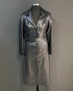 Women All Sizes Genuine Python Leather Real Black Snake Skin Long Overcoat Coat