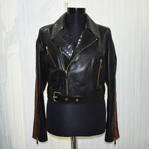 Women's Real Python Skin Trim Genuine Leather Luxury Motorcycle Biker Jacket