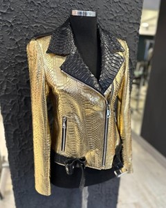 Genuine Python Leather Women's Golden Motorcycle Biker Jacket