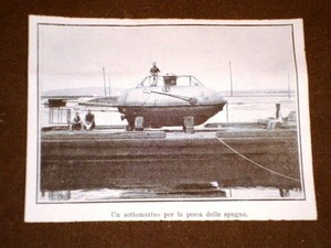 Invenzioni del 1908 Sottomarino per la pesca delle spugne Veduta generale