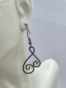 Artisan Copper Color Swirl Dangle Pierced Hook Earrings 1 1/2"