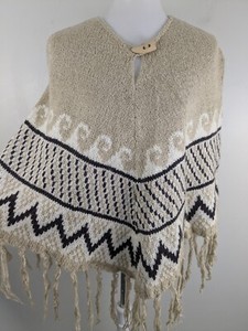 Vintage Alpaca Sweater Poncho Cape Peru Ecuador Llama Ethnic Boho One Size Shawl