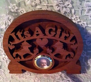 Baby Picture Frame "It's A Girl" - Handmade Wood Scroll Fretwork