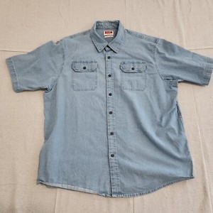 Wrangler Shirt Mens XL Blue Denim Short Sleeve Button Up Casual Pockets