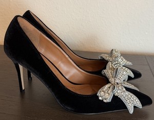 Kurt Geiger Size 9 / 40 Belgravia Black Velvet Rhinestone Bow Heels Shoes Pumps