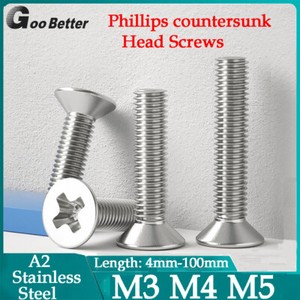 M3 M4 M5 A2 Stainless Steel Phillips Countersunk Flat Head Screw Long 4mm-100mm
