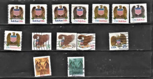 USA 14 different Definitive Used Eagle and Shield Stamps fine