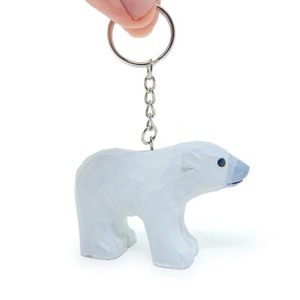 White Polar Bear Keychain Ring Clip Charm Miniature Wood Figurine Small Animal