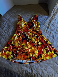 Roaman’s Floral Swimsuit Plus Size 16W Orange Red Swim Dress Tankini Summer