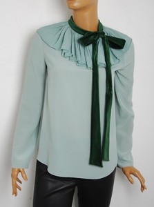 Chloé Women Light Blue Blouse Silk Cotton Long Sleeve Pleated Collar Shirt FR 36
