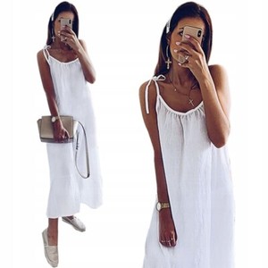 Women’s Summer Casual Loose Sleeveless Strap maxi cotton muslin Beach dress