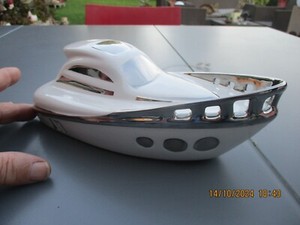 Joli Ancien Bateau Hors Bord Faïence Création Bord de Mer "Casablanca "