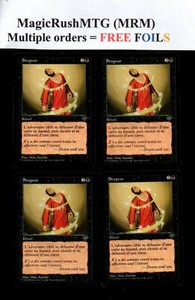 Vendeur sérieux. L'état des cartes correspond bien à la description, elles sont bien protégées, la commande est même arrivée avec 5 cartes offertes (dont 2 foils) qui font également office de protection. Vous pouvez commander les yeux fermés !