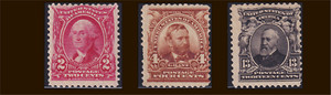 US Scott #301, 303, 308, Mint, OG, VG-F/VF Centering, SCV $89.