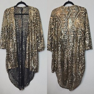 Windsor Sz L Black & Gold Sequin Open Front Kimono Topper Dressy Holiday Swiftie